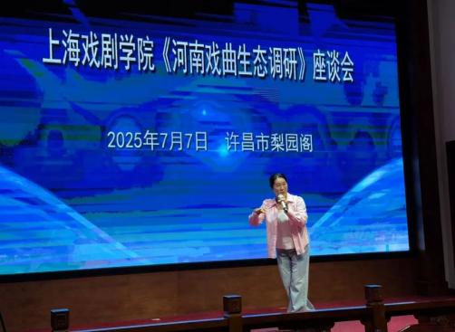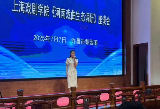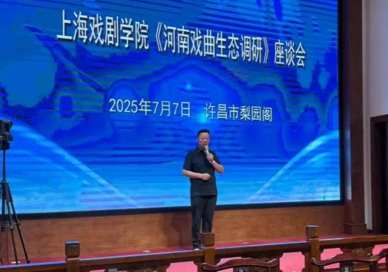 7月7日,在许昌市梨园阁内,上戏师生通过座谈对豫剧、曲剧、越调这三大河南戏曲剧种的生存现状进行了解。许昌市文化广电和旅游局党组成员、副局长段建伟,详细介绍了以“抓精品创排、抓赛事引领、抓演出市场、抓人才队伍、抓设施建设、抓融合发展”,推动上述剧种传承发展的宝贵经验。“六个抓”使戏曲在许昌始终保持着旺盛的生机活力,具有一定的示范作用。