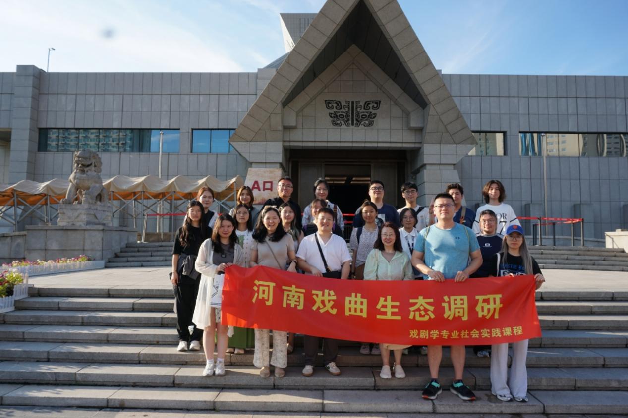 本次社会实践课程由上戏戏文系党总支书记方军,戏剧学专业主任黄静枫,专业教师李冉、顾振辉带队,戏剧学专业23级本科生和部分硕博士研究生参加。调研以“行走中原、溯源文化、对话生态、创新融合”为主线,旨在通过实地考察与学术研讨,深入认识河南戏剧生态,总结其创造性转化与创新性发展的有效经验,训练戏剧学专业学生的田野考察法,提升他们的科研素养。