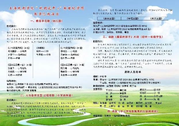 2025年7月7日至13日,由上戏戏剧文学系主任沈亮教授,戏剧教育专业彭勇文教授共同带队的戏文系“戏剧花开”暑期实践团队,远赴内蒙古乌兰察布市圆满完成了为期一周的戏剧教育和社会考察活动。这是我系戏教专业师生推广戏剧教育、服务基层学校、采风广袤天地的又一次生动实践。
