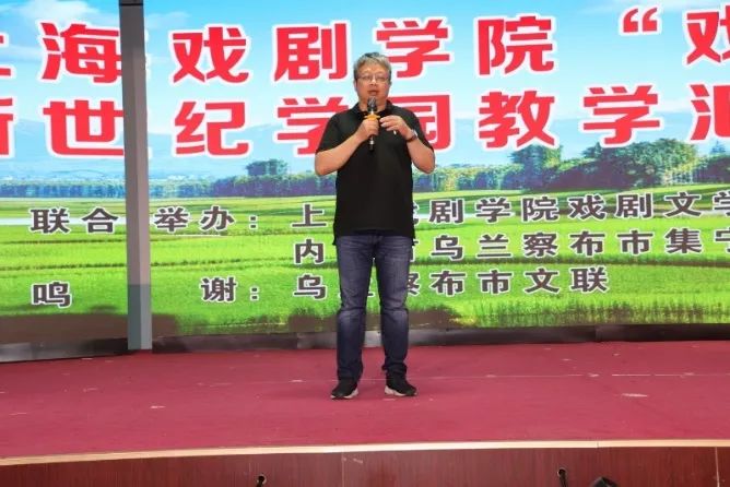 本次实践活动以教学汇报演出形式呈现,前来观看演出的有乌兰察布市文联党组书记、主席温欣华,集宁师范学院音乐学院院长秦雪峰,乌兰察布艺术学校校长郗存德,乌兰察布市融媒体中心党委委员、副主任牧仁,乌兰察布市文联党组副主席李尚芳,乌兰察布市艺术学校副校长白贵祥,集宁区教育局总督学朱志东,集宁区教育局体卫艺股股长高静,集宁新世纪中学董事长魏山虎,党支部书记刘鑫等领导和全校初中年级的众多师生、家长。演出开始前,沈亮主任向大家介绍了上戏戏文系的基本情况和“戏剧花开”项目的意义,感谢各方的大力支持。