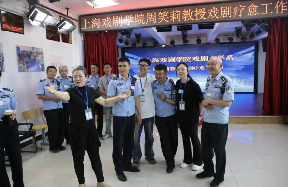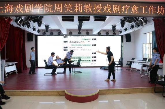 戏文系党总支副书记、副主任陈莹、周笑莉教授带领部分学生前往建新监狱(未成年犯管教所)针对狱警、未成年犯开展戏剧工作坊。周笑莉老师为狱警开展了戏剧疗愈工作坊。首先让狱警选取最能代表自己的植物作为新身份,并通过妙趣横生的问答,引导狱警认识到“表演”源自人的天性,具有广泛性,无需拒绝“表演”。紧接着通过“空间行走”、肢体演状态、“老太买菜”等一系列互动性戏剧游戏,帮助狱警打破边界,建立联系。而后组织狱警分小组进行角色扮演,适应规定情境,启发他们认识到职业与生活角色的差异。接着,周老师指导狱警形象地演绎出在职业与生活中的境遇和他们复杂的心路历程,极富感染力。戏剧使大家得以短暂地“做自己”,但生活和工作还要继续,最后,周笑莉老师鼓励狱警观照内心、表达真情,也祝愿狱警能继续热爱这份职业背后的光荣与责任——认清了生活的磨难但依然热爱生活的人,都是真正的英雄。
