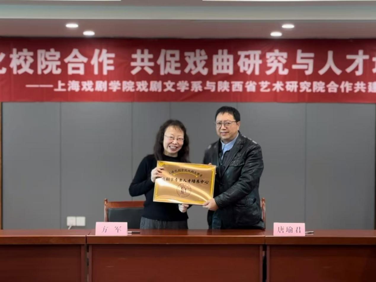 10月27日,上海戏剧学院戏剧文学系与陕西省艺术研究院举行共建座谈会。陕西省艺术研究院党总支书记唐瑜君,副院长张中驰、邓萌、何磊等参加座谈,并详细介绍了该院在文化艺术资源极为丰厚的陕西,如何积极致力于文化的创造性转化和创新性发展,陕西戏剧艺术特色的研究与提炼,以及珍贵艺术档案的有效保护等方面的情况。上戏戏文系着重介绍了学科专业发展情况,对未来戏剧学的探索,以及科艺融合、产教融通背景下人才培养模式的改革创新,希望通过合作共建联合开展前沿性课题研究,关注戏剧新形态,从而进一步为戏剧学人才培养夯实平台,深入践行习近平文化思想。方军和唐瑜君分别代表双方签署共建协议,并为戏剧学专业人才培养中心暨教学实践基地揭牌,标志着双方共建迈出了重要一步。