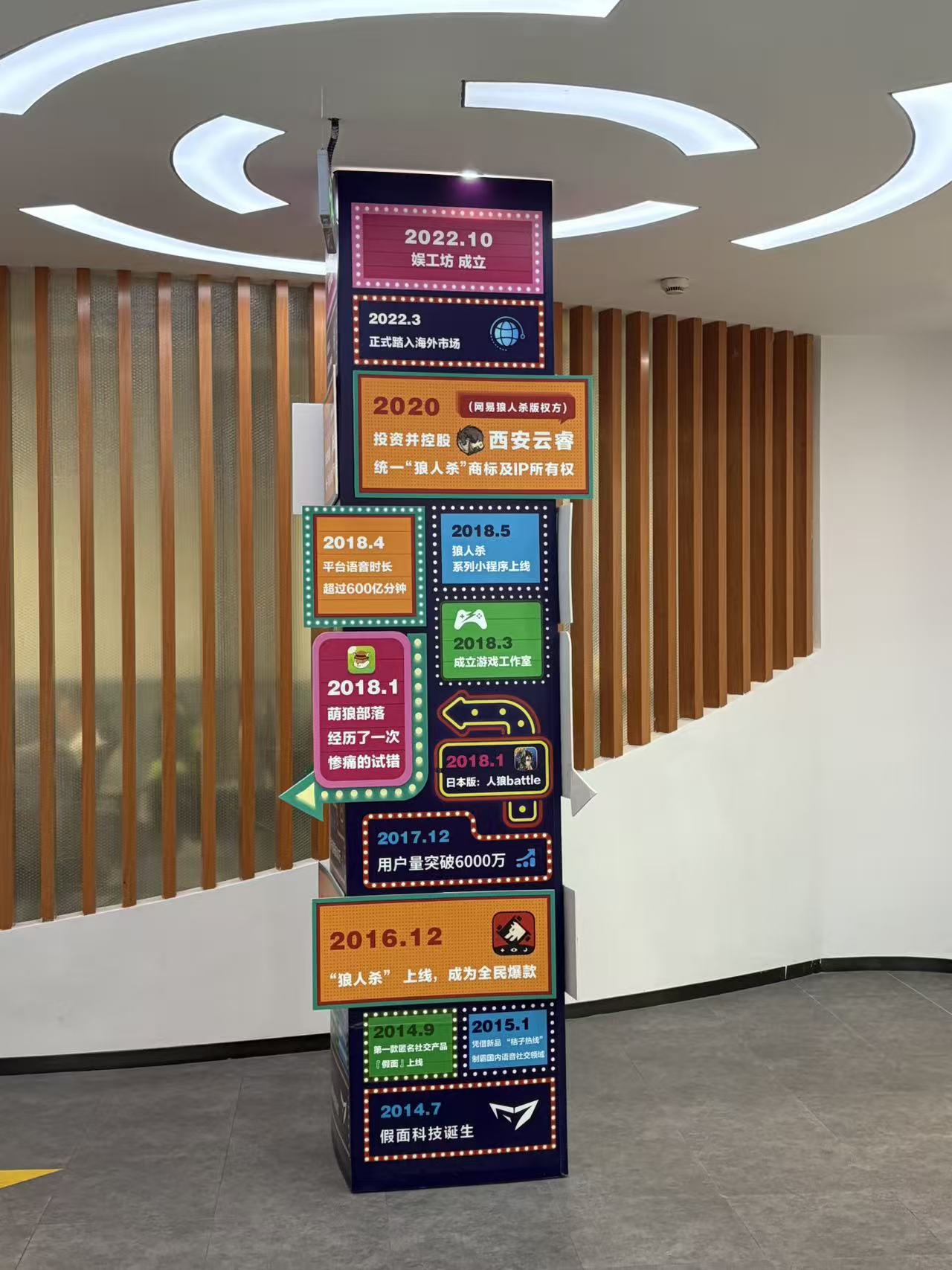 随后,师生一行前往上海假面信息科技有限公司进行访问。假面科技副总裁徐啸宁向师生们介绍了公司核心产品“狼人杀”APP的研发历程、功能设计及背后的创作故事。副总裁徐啸宁在分享中提到,桌游不仅是娱乐产品,更是人与人之间建立连接、传递叙事的媒介,这与戏剧文学中“情境构建”与“角色互动”的理念高度契合。