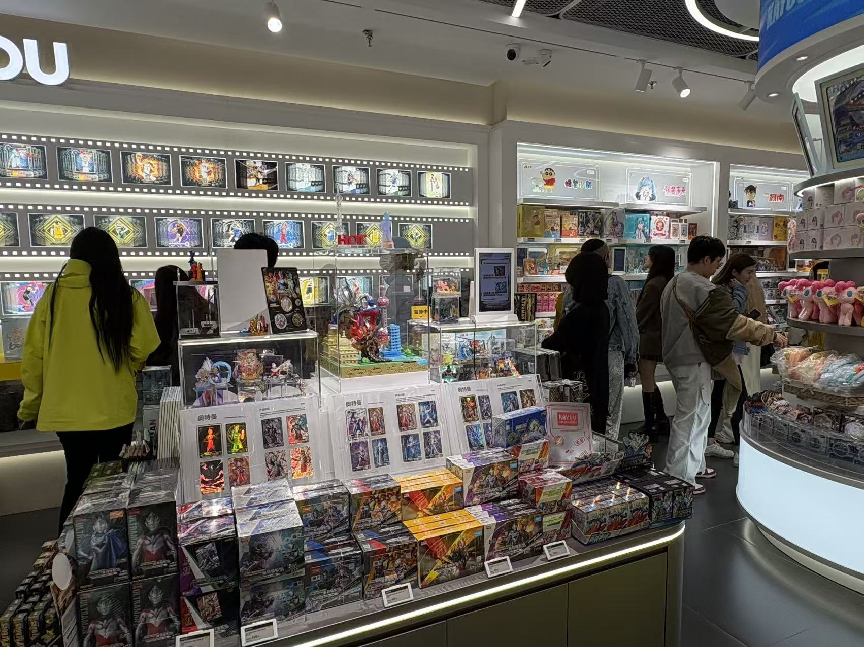 问答环节结束后,卡游零售部负责人带领师生前往南京东路卡游旗舰店实地考察。同学们在零售场景中,亲身体验了卡游产品与消费者之间的互动机制,进一步理解了“内容—产品—用户”之间的闭环逻辑。