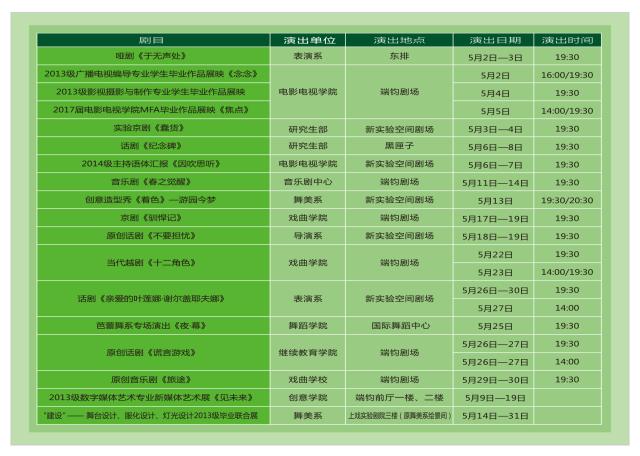 13级广播电视编导专业作品展映 演出单位:电影电视学院 演出时间:5月4日 演出地点:端钧剧场