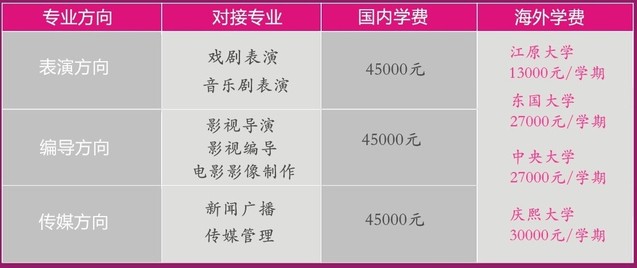【备注:国内课程:韩语语言+专业课程 ;学习时间:每年8月底至次年5月,经考试合格升入韩国对应大学,韩国高校学费具体参考该校当年收费标准】