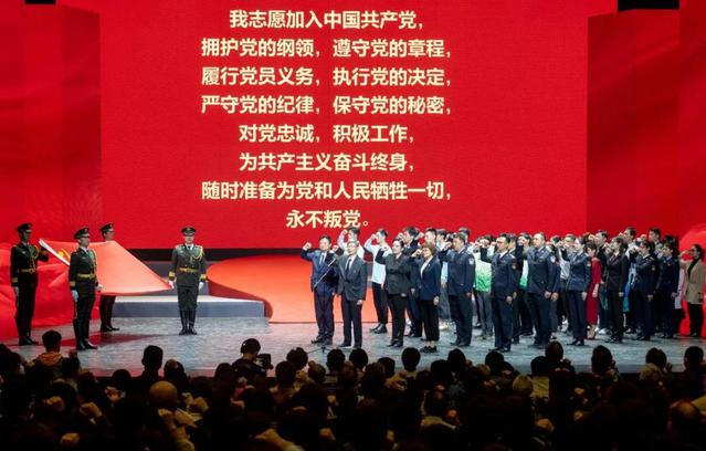 专题党课的尾声,全场共产党员共同重温了庄严的入党誓词。