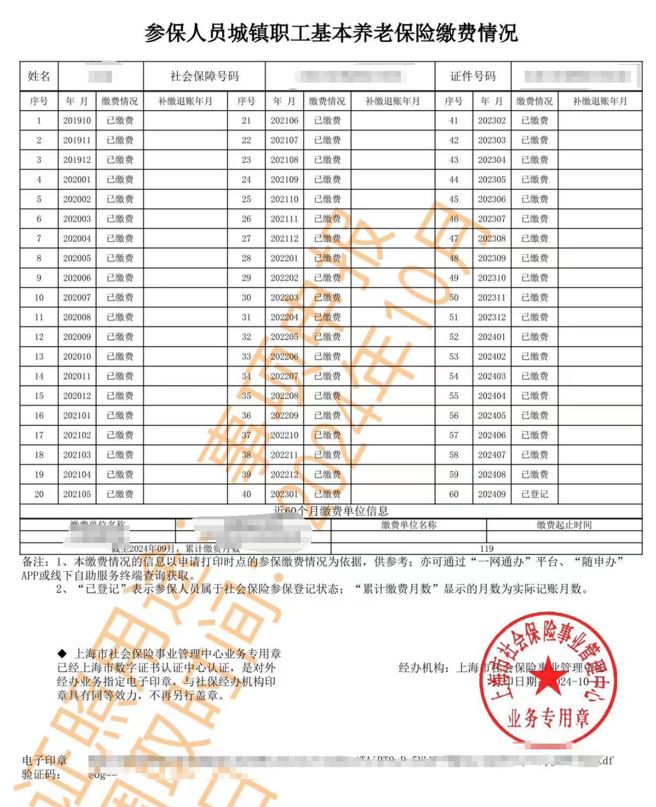 附件6:上海市《参保人员城镇职工基本养老保险缴费情况》样张.png