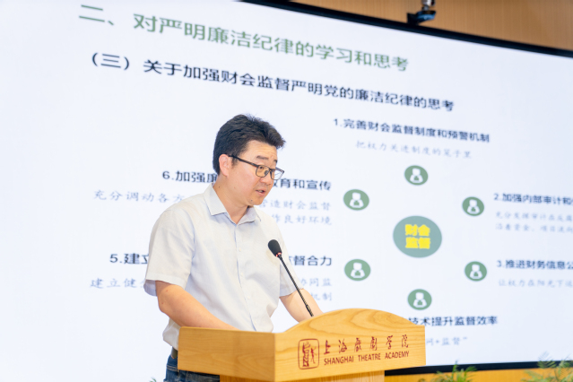 毕天睿从财务处工作实际出发,深入思考了《条例》中关于廉洁纪律的有关规定。他分析了高校违反廉洁纪律的主要表现形式,提出了完善财会监督制度,建立财务风险预警机制,加强内外部审计的协同,推进财务公开透明,提升信息化监督效率,形成多方联动合力,加强宣传教育等6条严明党的纪律的措施,将党纪学习教育成果内化于心,外化于形。