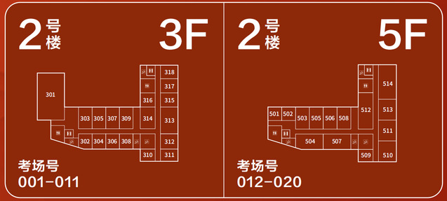 考生进入考点后,直接前往二号楼东侧入口,按现场工作人员指引排队进入二号楼。入场流程如下: