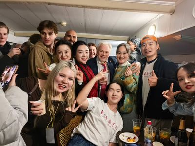 艺术的交流最终融汇于真挚的友谊之中。当晚九点,在主办方的盛情邀请下,各国艺术家们登上了游览轮渡,共赏莫斯科迷人的夜景。河风拂面,霓虹闪烁,游轮内变成了一个移动的国际文化交流沙龙。卸下演出重任的上戏学子们,以自信而谦逊的姿态,与来自世界各地的戏剧同仁们畅谈艺术、交流文化、合影留念。在欢声笑语中,思想的火花在碰撞,友谊的桥梁在加固。这个夜晚,因艺术而相识,因理解而相知,莫斯科的夜色也因这群年轻的文化使者而显得更加温柔与璀璨。