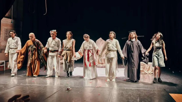 该剧演出当晚座无虚席,三次谢幕仍难挡观众热情,散场后演员被久久围拢,掌声与赞叹成了最直接的共鸣。《洄游记》对传统经典的创造性转化,正是上戏长期致力于在舞台上构建中国话语,并以艺术为媒提升国际传播效能的生动体现。
