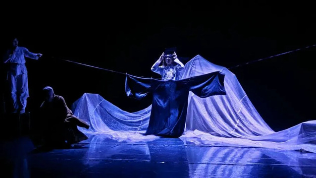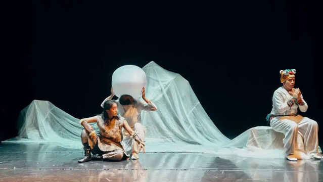 上戏带去的导演系原创的《洄游记》,是对《西游记》的当代诠释。该剧将诗意与幽默相交织,神话框架里藏着“成为人”的哲思,恰好与艺术节“水”的主题相呼应——舞台上,“水”是流转的命运,也是涤荡的生命,承载着对觉悟、记忆和归属的追寻。