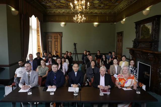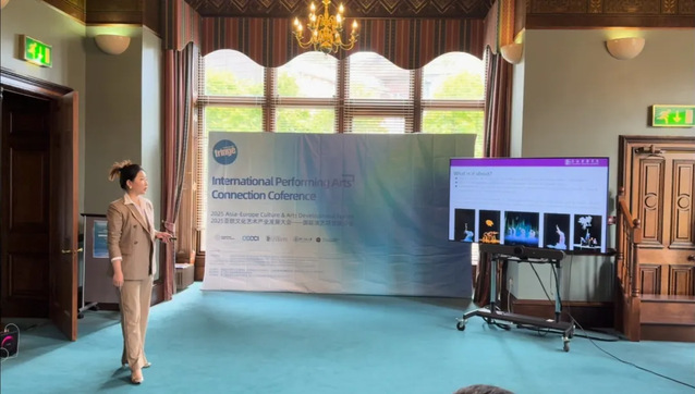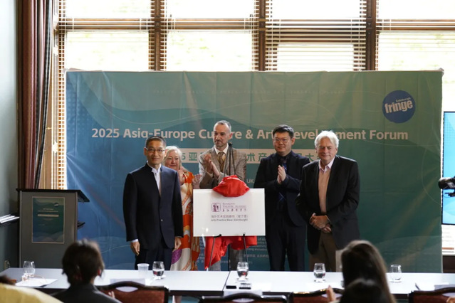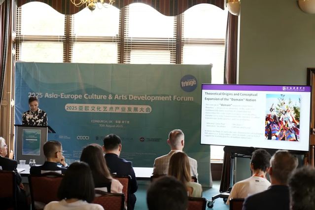 在爱丁堡,上戏舞蹈学院联合中欧国际文化创新中心、英国全球青年人才基金会等机构举办了“2025亚欧文化艺术产业发展大会”。来自20多个国家的近百位代表围绕文化艺术的国际交流与未来发展、亚欧国际文化交流市场机制、跨文化艺术发展趋势等核心议题展开深入研讨,周蓓作主题发言,制作人邹蕊和青年演员董涵进行了现场展示。