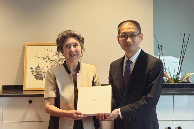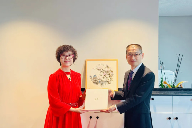 在中国驻法大使馆,代表团与大使馆文化处、教育处负责人会面。聂伟介绍了上戏近年来在国际交流合作方面所做的工作以及学校在八十周年校庆期间将举办的国际交流活动。文化处处长陈罡处长对上戏在对外文化交流与合作中做出的贡献表示感谢,对上戏在国际艺术舞台上取得的丰硕成果表示祝贺,并建议上戏借鉴法国小型剧目的灵活创作与演出模式,积极探索与小剧场、多功能空间等开展“文商旅”融合型展演,增强文化输出的适应性与传播力。教育处处长严爱华充分肯定了上戏在高水平艺术人才培养和国际学生教育方面取得的成绩,建议上戏更积极地对法国及欧洲开展高水平艺术交流活动,扩大暑期国际学校和留学生招生范围,提高生源质量,推动更多法国和欧洲青少年来中国学习交流,进一步夯实中法人文交往的民意基础。