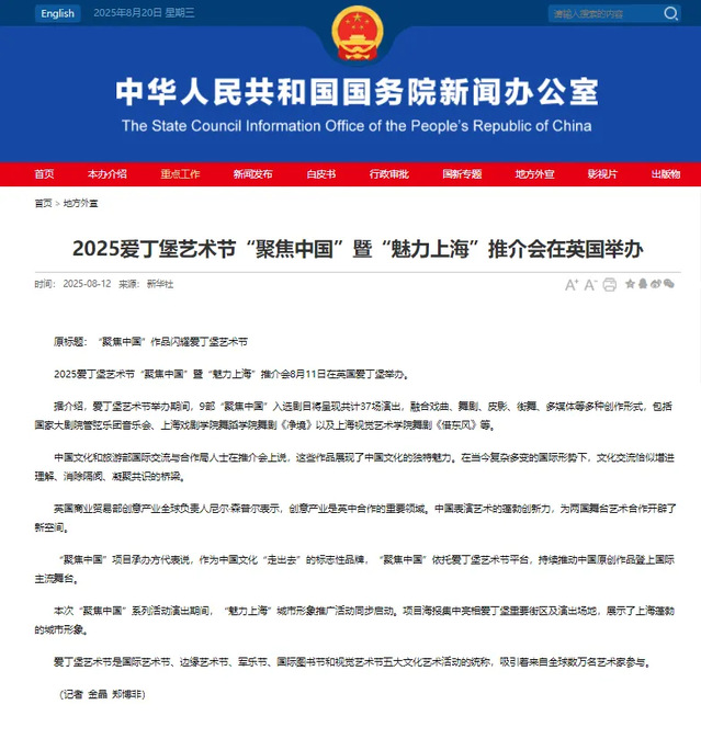 2025 爱丁堡艺术节“聚焦中国”暨“魅力上海”推介会,是今年爱丁堡艺术节的一个重要项目。中国文化和旅游部国际交流与合作局,我驻英使馆、驻爱丁堡总领事馆,上海市文化和旅游局等相关机构负责人及海内外院团、媒体、艺术家代表等百余人出席活动。推介会为喜迎80华诞的开云足球首页官网下载特设“上戏发布”板块。聂伟作“艺术创演共生共兴,共建共联全球网络”主题发言,从莎剧的东方诠释到AI戏剧形态探索,上戏80年来积极构建文明对话的共生空间,以科艺融合共创未来戏剧共兴空间。“上戏发布”向全球艺术家发出邀约:无论创意源自何方,上戏共生、共兴、共建、共联的艺术创演网络都愿意通力协作、全力赋能。