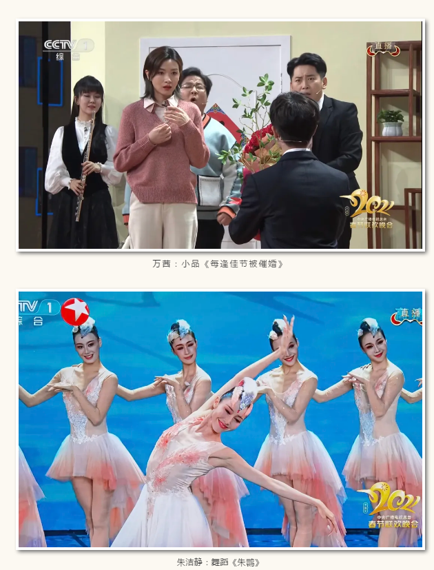 春晚作为全国人民的“年夜饭”,历来备受瞩目,每年都有一批上戏校友登上这座大舞台,有的甚至连续多年出现。在今年春晚中受到一致好评的舞蹈《朱鹮》,由上戏校友朱洁静领舞。2020年春晚,朱洁静领舞的《晨光曲》(舞剧《永不消逝的电波》片段)惊艳全国,今年她再度翩翩起舞,为这个春天带来了一份祝福、一片祥和。